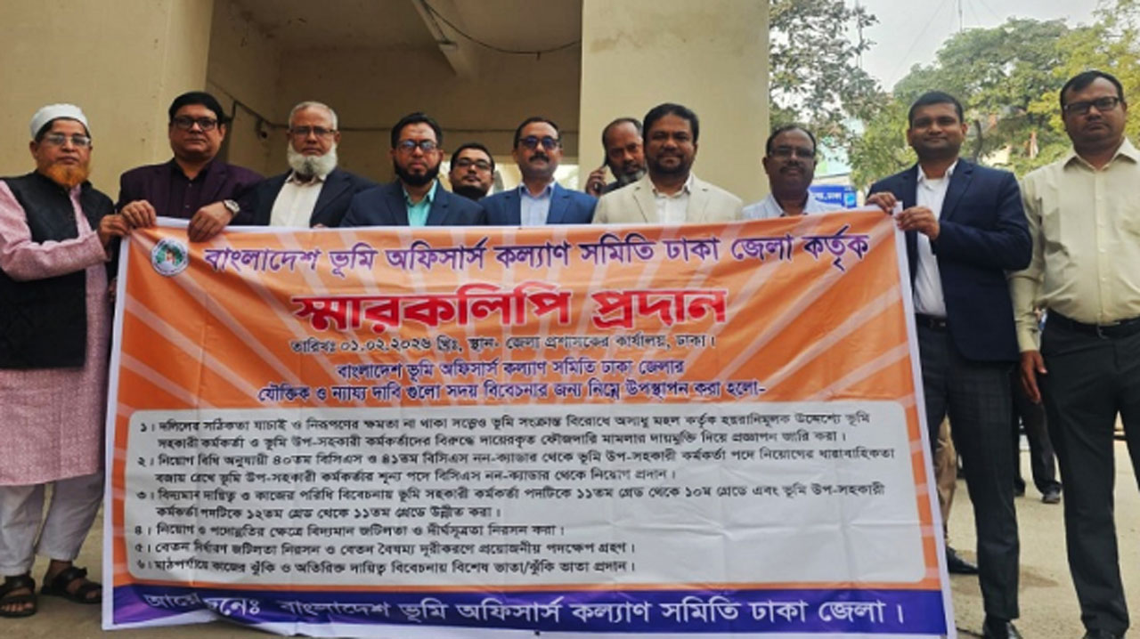 মাঠপর্যায়ে কর্মরত ভূমি কর্মকর্তাদের দাপ্তরিক কাজে ফৌজদারি মামলা থেকে দায়মুক্তি ও নিরাপত্তা নিশ্চিতের দাবিতে ভূমি মন্ত্রণালয়ে স্মারকলিপি দিয়েছে বাংলাদেশ ভূমি অফিসার্স কল্যাণ সমিতি। রোববার (১ ফেব্রুয়ারি) ঢাকার জেলা প্রশাসকের মাধ্যমে এ দাবি পেশ করা হয়। দাবিনামায় ই-নামজারি ও খাস জমি উদ্ধারের মতো ঝুঁকিপূর্ণ কাজে কর্মকর্তাদের আইনি সুরক্ষা নিশ্চিতের ওপর জোর দেওয়া হয়।